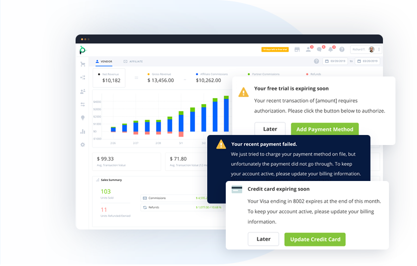 Deploy in-app notifications inside of your web application or members area to reduce churn and failed payments.