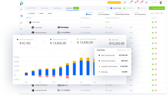 Affiliates can monitor pending commissions and